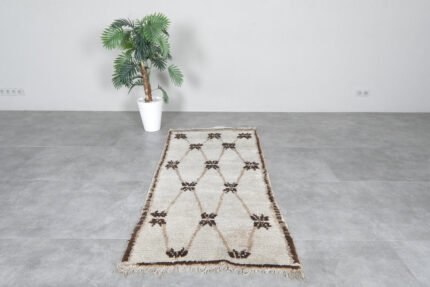 Small wool rug 3 X 6.9 FT beni ourain rug