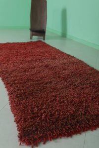 Infuse your home with vibrant character through this all-wool red Berber rug. Measuring 3.6 ft × 7.6 ft (110 cm × 231 cm), it is handwoven by skilled Berber artisans from 100% natural wool. Rich red tones combine with traditional geometric patterns to bring warmth, texture, and timeless artistry to any room. Perfect for living rooms, bedrooms, or cozy corners, this rug blends heritage craftsmanship with striking design.