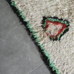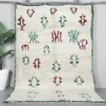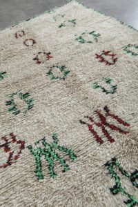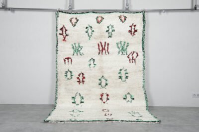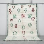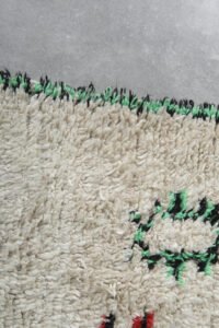 Bring energy and character into your home with this abstract Azilal rug, handwoven in Morocco from soft, natural wool. Its playful, asymmetrical linework in shades of red, blue, and deep green adds a sense of movement and artistic spontaneity, while the warm ivory base keeps the design grounded and versatile. Each curve and zigzag tells its own story, making this rug not just décor, but conversation-worthy art.