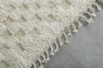 Add bold character and playful charm to your space with this handcrafted checkered Moroccan rug. Woven from soft, natural wool by Berber artisans in the Atlas Mountains, it features a striking black-and-ivory checkerboard pattern that blends modern style with authentic tradition.