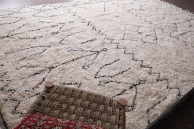 Bring warmth, texture, and harmony into your home with this custom creamy Moroccan rug, accented by bold black stripes. Handwoven by skilled Berber artisans from 100% natural wool, it offers softness underfoot and long-lasting quality. The clean linear design perfectly balances minimalism with heritage, making it a stylish addition to modern, Scandinavian, or boho-inspired interiors.