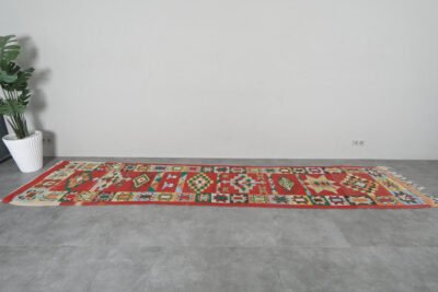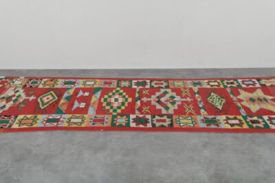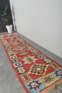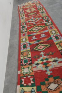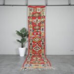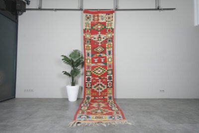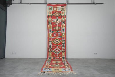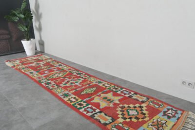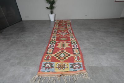 Elevate your hallway or large living area with this handmade Moroccan rug, handwoven from 100% natural wool by skilled Berber artisans. Measuring 2.9 ft x 13.6 ft (89 cm x 415 cm), it features authentic tribal patterns that add warmth, texture, and cultural richness to your home. Its neutral tones and elongated design make it an ideal runner for narrow spaces, combining timeless craftsmanship with versatile style.