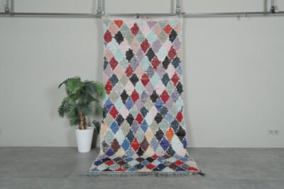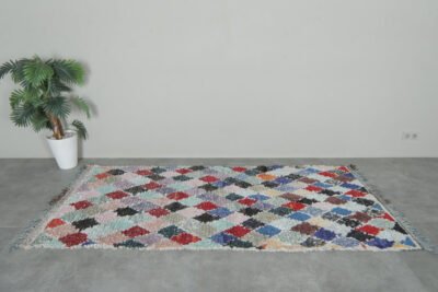 Pastel diamond Moroccan boucherouite rug – 3.7 ft x 8.2 ft