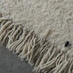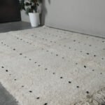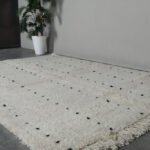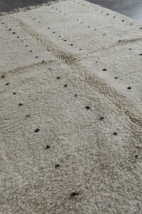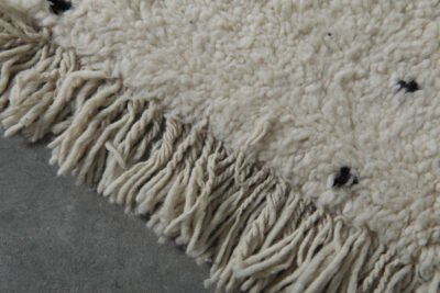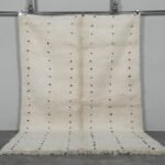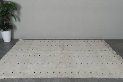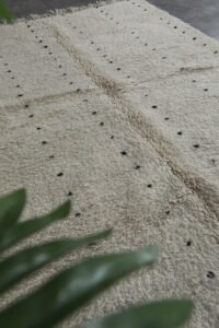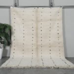 Embrace the beauty of minimalism with this handmade Moroccan rug, carefully woven from 100% natural wool by Berber artisans in the Atlas Mountains. Its soft ivory base is delicately accented with fine black linear details, creating a calm, balanced look that harmonizes effortlessly with modern, rustic, or Scandinavian interiors.