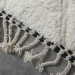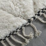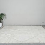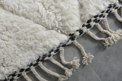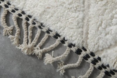 Add effortless elegance to your home with this handmade Moroccan rug, crafted from 100% natural wool by skilled Berber artisans in the Atlas Mountains. Its clean ivory base is accented with a subtle black linear motif, creating a minimalist design that pairs seamlessly with modern, boho, or Scandinavian interiors.