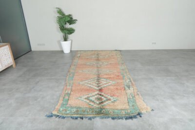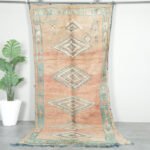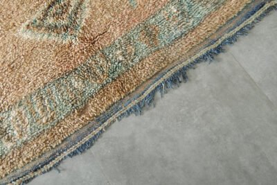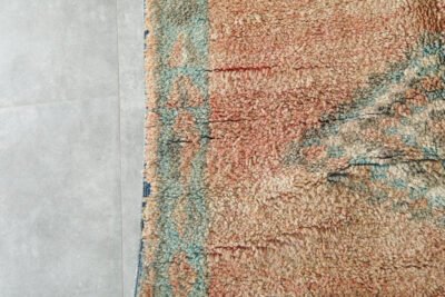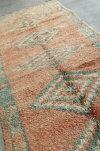 Step into the world of Moroccan craftsmanship with this stunning handwoven treasure, created by skilled Berber artisans in the remote High Atlas Mountains. This isn’t just a rug – it’s a piece of living history that brings centuries-old traditions into your modern space.