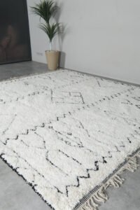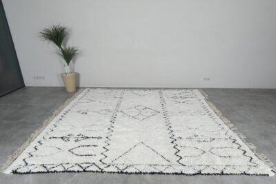 Create a calm and inviting atmosphere with this luxurious handmade Moroccan rug, crafted from 100% natural wool by Berber artisans using time-honored techniques. Its plush, creamy-white surface is free of pattern, offering a minimalist elegance that blends seamlessly with both modern and rustic interiors.